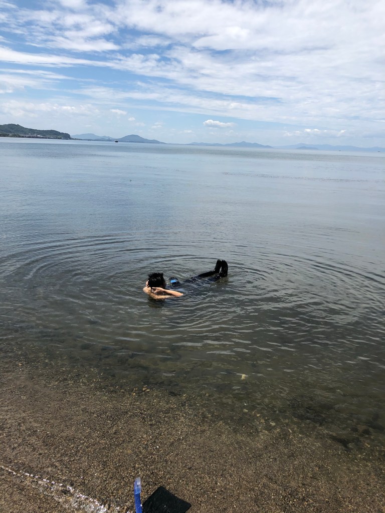 ついでに、ついでにですよ、湖水浴をしながらバスを狙ってみたり
