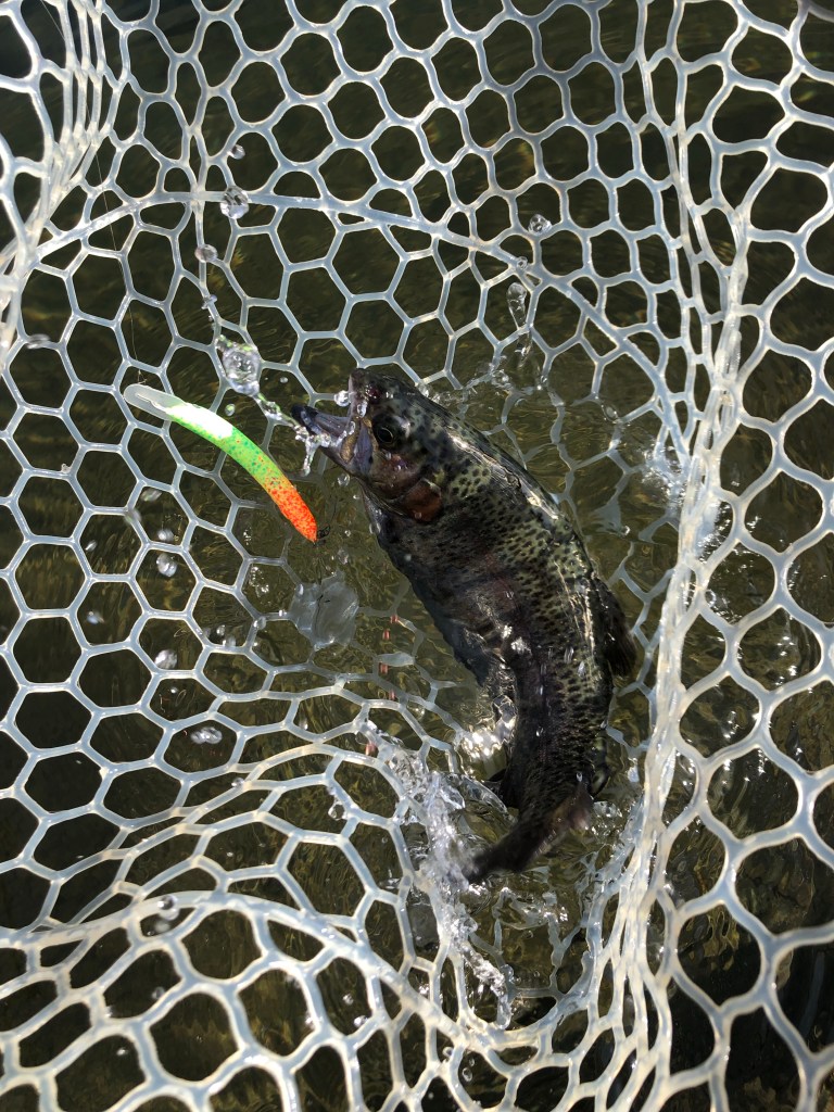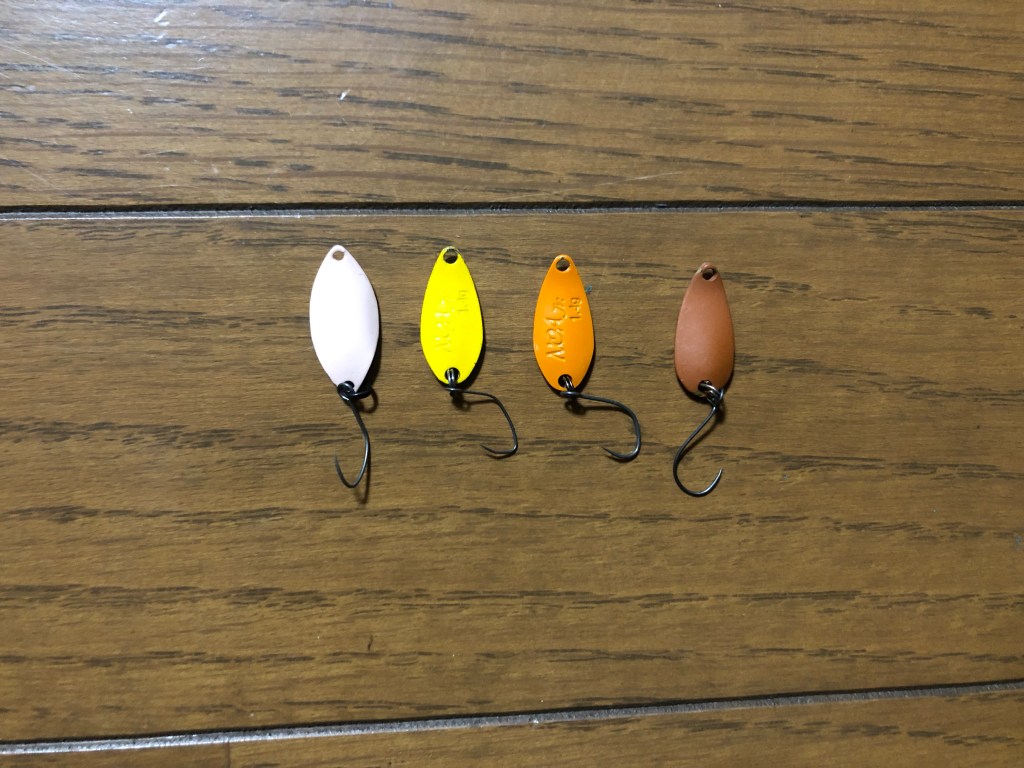 で、キャスト切れしたあとは何で釣ればいいのかわからずスプーン迷子になってましたが、周りの人が帰り始めたタイミングでチョロチョロ動きながら例の4つをローテし何匹か拾って終了!