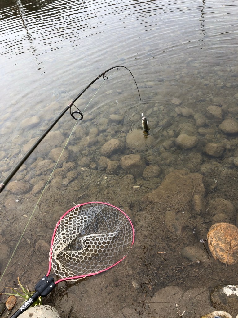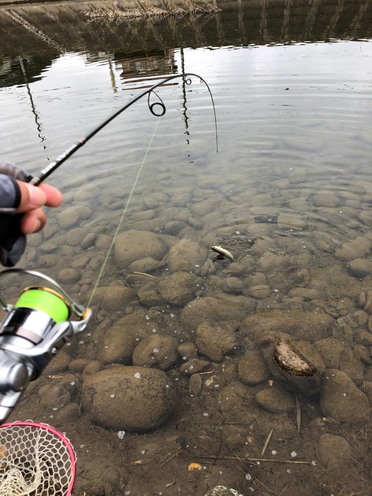 岸際に草も生えててトレースコースが難しかったり、ミスキャストで対岸にスプーン突っ込んだり…