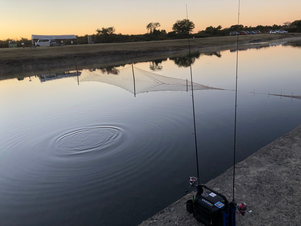 まずは第1ブースの下流側ネットと渡船の中間ぐらいの空いていたところに