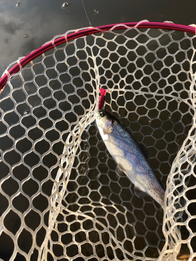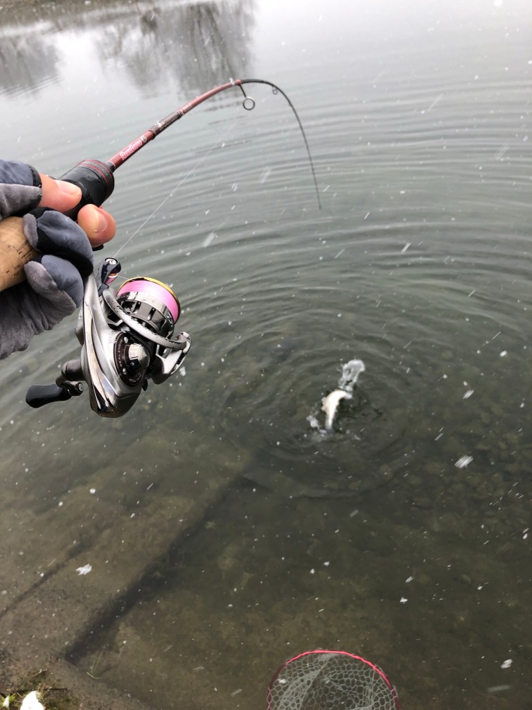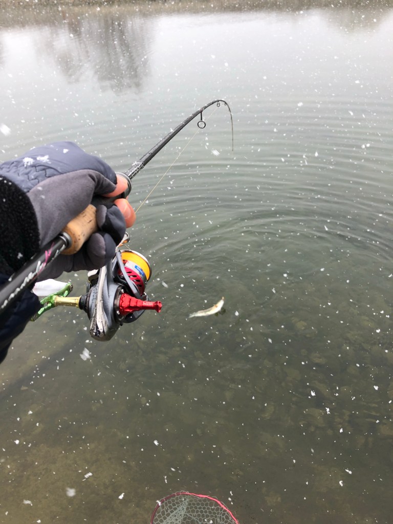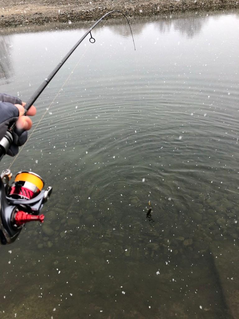 中身としては、雪が強くなったタイミングで表マットゴールドのピーチ0.9や食わせのチェイサー0.6でカウント2〜5、雪が止んだタイミングではマジックジャークという感じでした